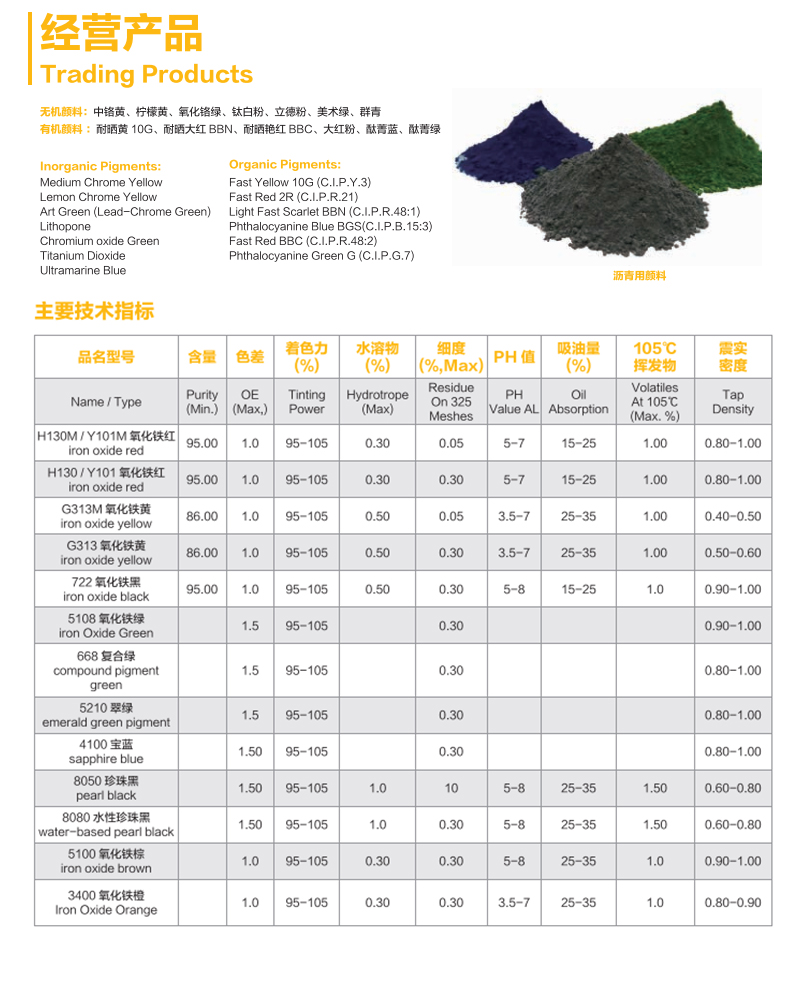 颜料紫红 珍珠黑系列 超细氧化铁红 超细氧化铁黄 氧化铁棕 氧化铁橙