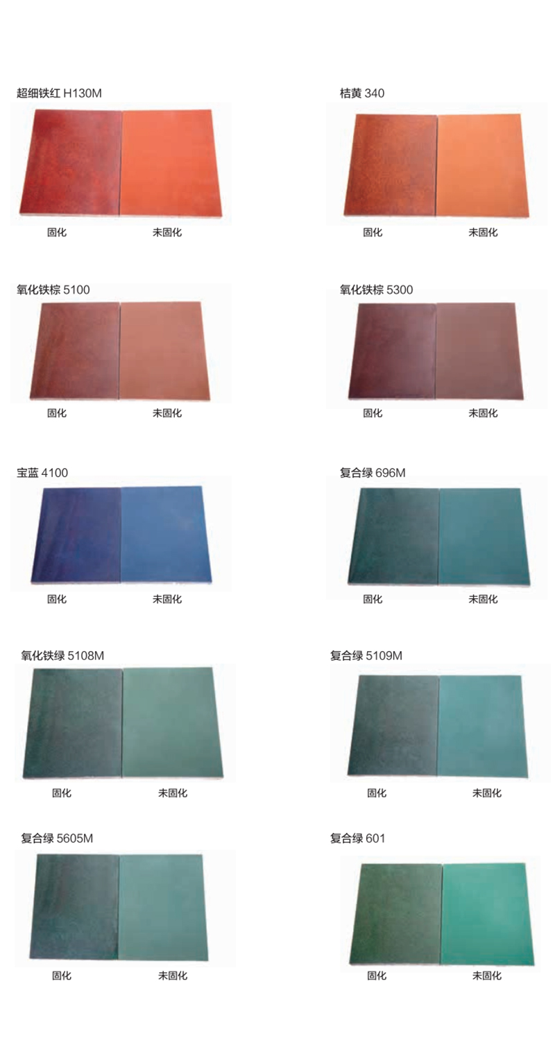 备注: G313M、H130M颜料添加量为2.5%,其他的颜料添加量为3.5%